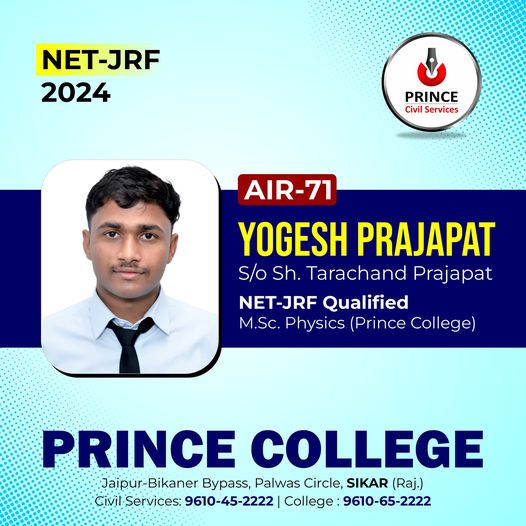 हायर एजुकेशन में बहुत कम स्टूडेंट्स ही जा पाते हैं ऐसे में अगर आप पोस्ट ग्रेजुएशन कर रहे हैं तो NET आपके लिए एक अच्छा ऑप्शन है। जिसको पास कर आप अपने करियर को सिक्योर कर सकते हैं। NET के एग्जाम के बेस पर आप किसी भी कॉलेज में पढ़ा सकते हैं। अगर आप पीएचडी करना चाहते हैं तो JRF सर्टिफिकेट के बेस पर आपको 30।से ज्यादा की हर महीने फेलोशिप मिलती है जिससे आर्थिक कमी महसूस नहीं होगी। अगर आप पोस्ट ग्रेजुएशन के साथ साथ UGC NET की तैयारी करना चाहते हैं सीकर जिले में स्थित प्रिंस कॉलेज आपके लिए एक बेस्ट ऑप्शन बन सकता है। जहां देश की टॉप फ़ैकल्टी व शांत वातावरण में मॉडर्न टेक्नोलॉजी के साथ आप UGC NET JRF की तैयारी कर सकते हैं। अधिक जानकारी के लिए प्रिंस कॉलेज की आधिकारिक वेबसाइट https://princecollegesikar.com/ पर विजिट करें।